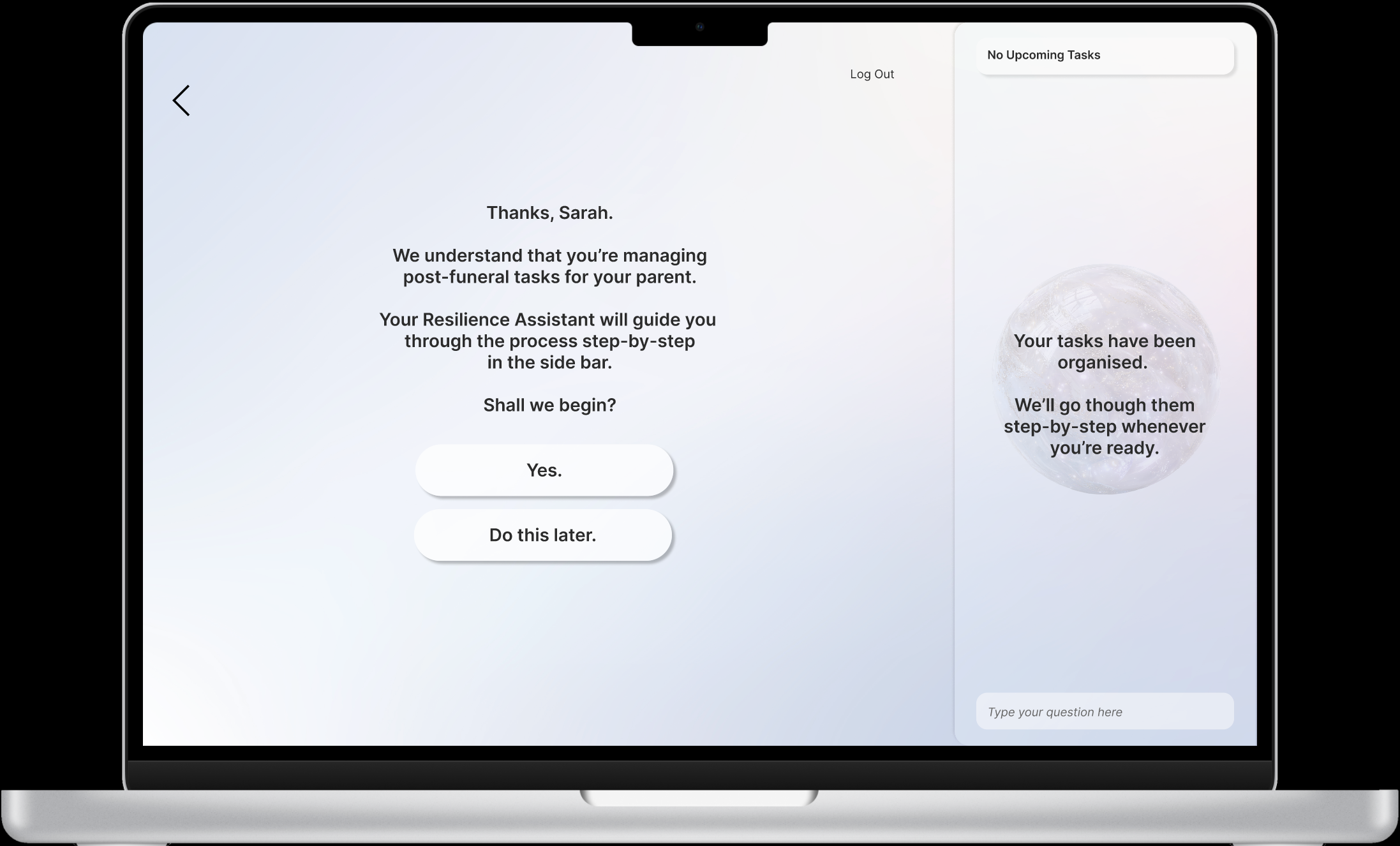 Design an intelligent AI assisted web portal that helps bereaved family members in Singapore navigate and complete essential post-funeral administrative tasks. The experience should feel emotionally supportive, task-oriented, and easy to follow. It should minimise confusion while respecting the sensitivity of the user’s state of mind.
