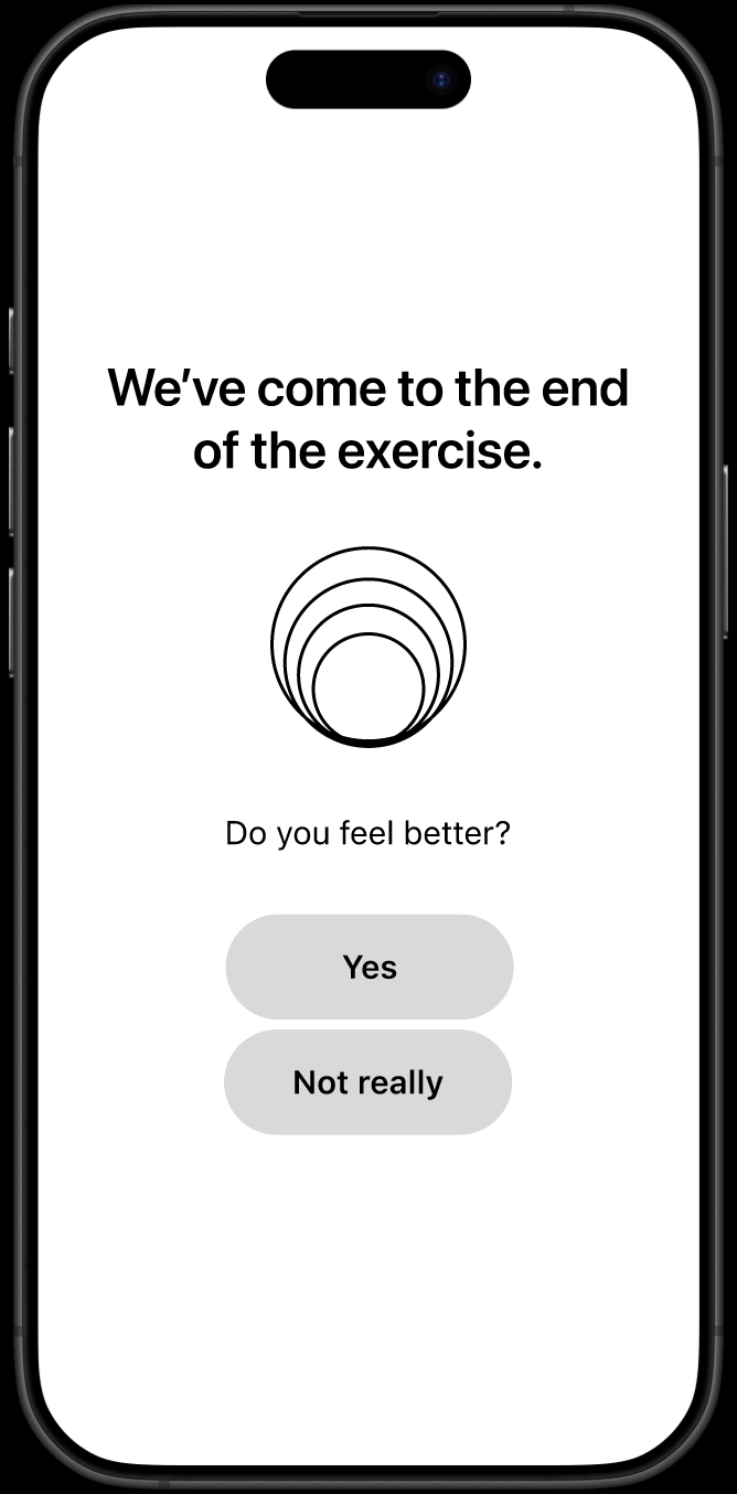 Design post-exercise check-ins to build care while gathering insight (e.g. “Do you feel better?” “Was this helpful?”)
