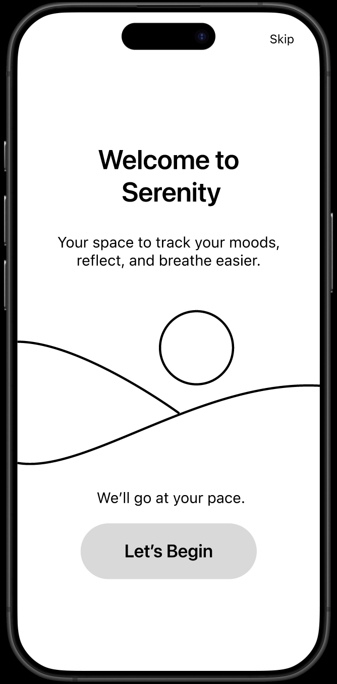I was presented with a realistic scenario involving onboarding drop-off – a common issue in apps that require emotional engagement and consistent usage. The goal was to reduce onboarding drop-off and help users engage meaningfully with mood tracking, breathing exercises, CBT reflection tools, and journaling features from the first session.